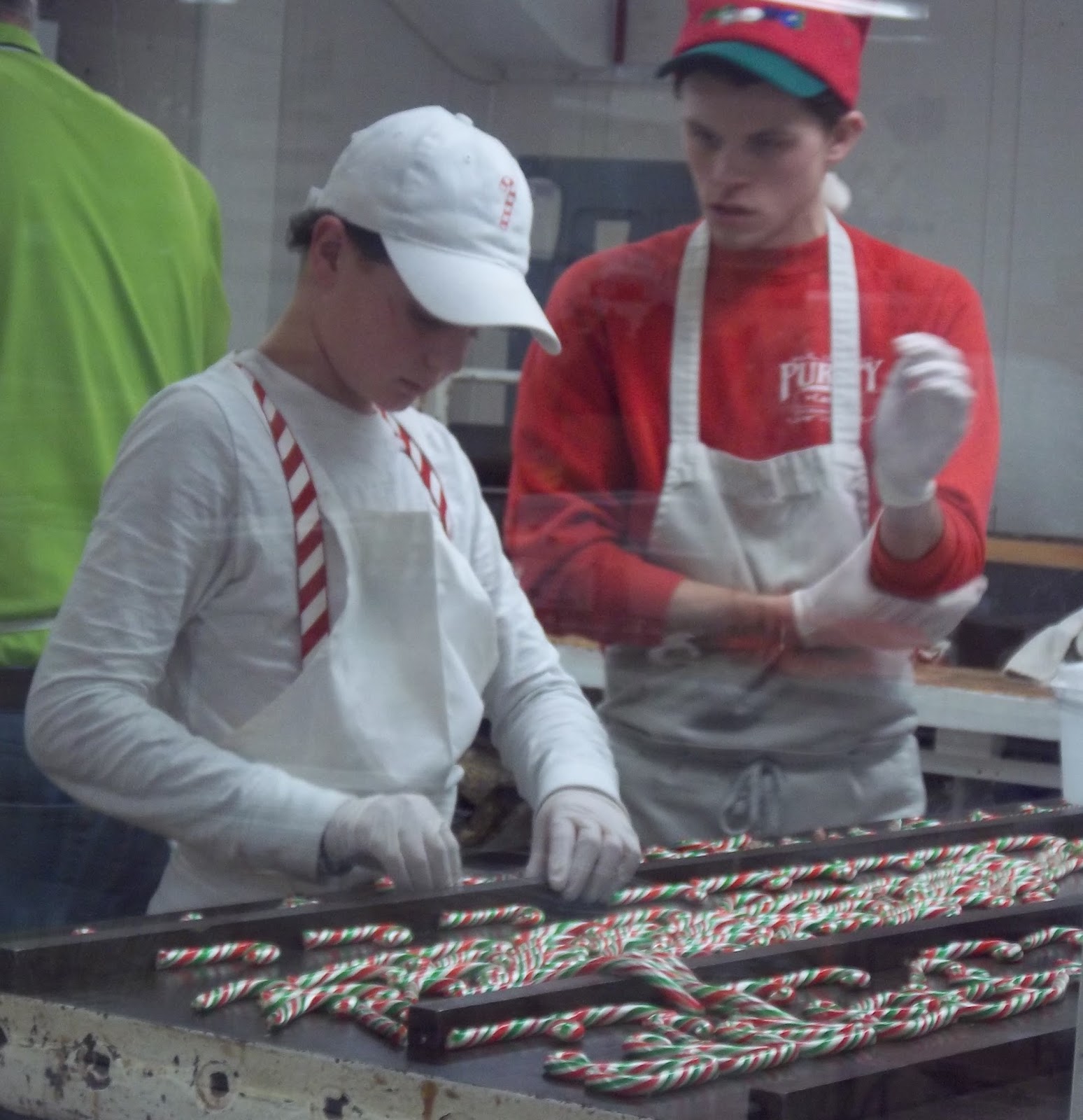 During one visit several years ago, one of the employees informed me that Purity makes candy canes by hand; production begins after Thanksgiving.